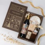 Zestaw z winem czerwonym, czekoladą z żurawiną i herbatą zimową. Elegancki upominek dla klientów i pracowników.