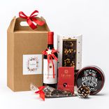 Wino czerwone wytrawne Rasgón i czekolada Divine Chocolate z żurawiną - świąteczny zestaw dla klientów i partnerów na Boże Narodzenie.