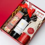 Czerwone wino wytrawne Rasgón i kawa 100% Arabica z pralinami marcepanowymi - świąteczny zestaw dla pracowników i klientów na Boże Narodzenie.