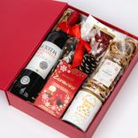 Wino czerwone wytrawne Mureda i herbata świąteczna z orzeszkami w karmelu — świąteczny zestaw prezentowy dla klientów, partnerów i pracowników firmowych.