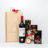 Wino czerwone wytrawne Mureda i herbata świąteczna z orzeszkami w karmelu — świąteczny zestaw prezentowy dla klientów, partnerów i pracowników firmowych.