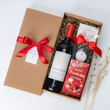Czerwone wino wytrawne Rasgón i czekolada belgijska Cornellis 1888 z żurawiną - świąteczny prezent dla klientów firmowych na Boże Narodzenie.