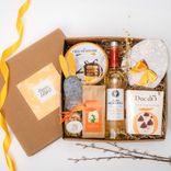Wino włoskie białe Principato z belgijską czekoladą i ekskluzywną herbatą wiosenną - tradycyjny wielkanocny upominek dla klientów i partnerów biznesowych.