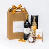 Wino czerwone wytrawne Merlot i czekolada z suszonymi owocami - świąteczny zestaw dla klientów i partnerów na Boże Narodzenie.