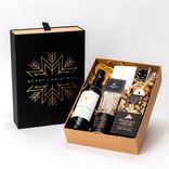 Wino czerwone wytrawne, kawa mielona Kaldi Coffee oraz praliny Lindor i Ferrero Rocher - świąteczny zestaw dla klientów i partnerów biznesowych.