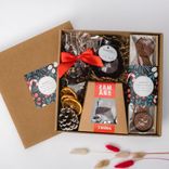 Herbata zimowa, ciasteczka kakaowe i czekolada łamana z wiśnią - ekologiczny świąteczny zestaw dla pracowników i klientów na Bożego Narodzenia.